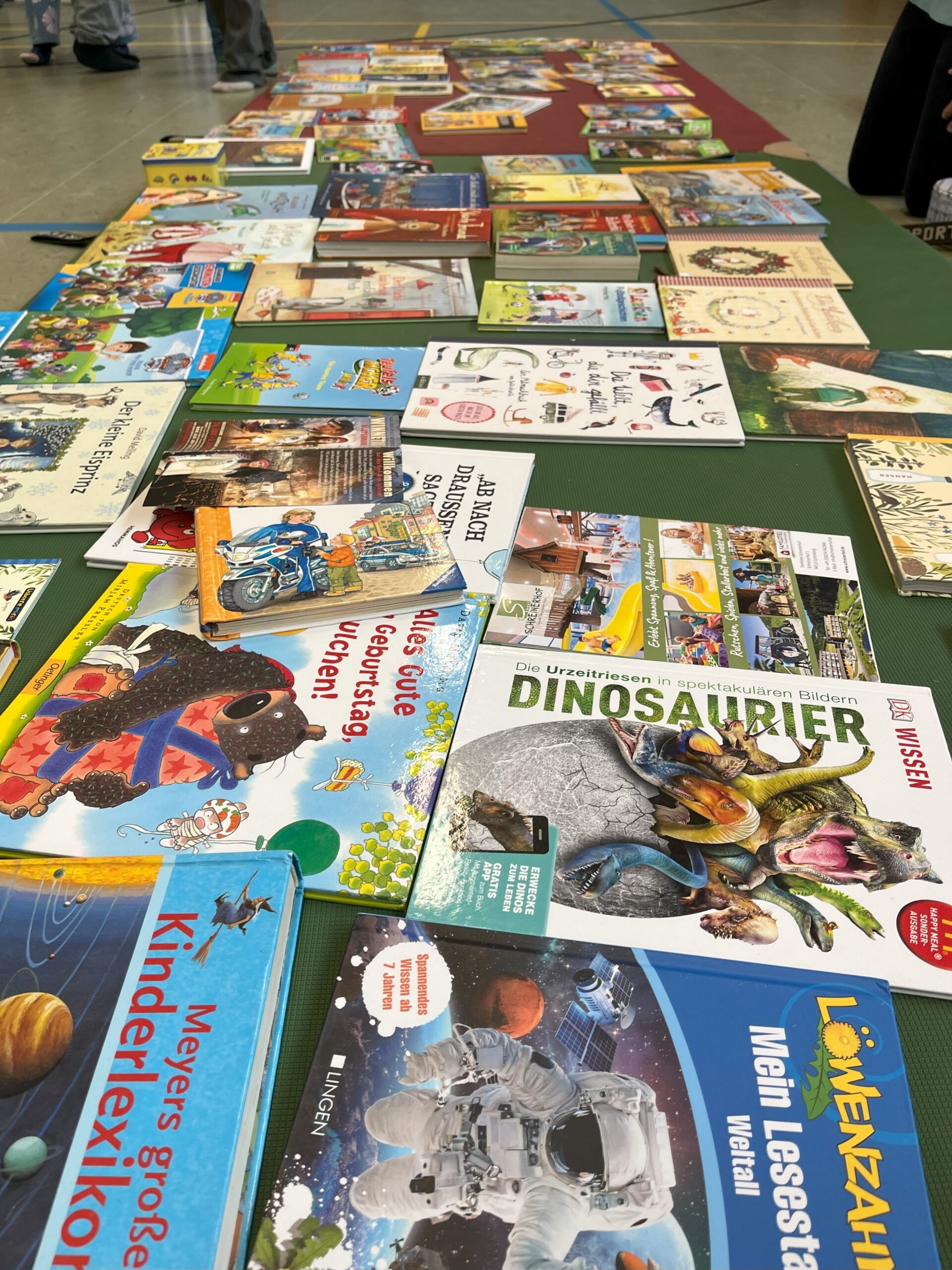 In der Turnhalle fand ein großartiger und vielfältiger Bücherflohmarkt statt. Wer mochte, kam verkleidet als ein Lieblingscharakter aus einem Buch und konnte das Kostüm einer Jury vorstellen. An verschiedenen Stationen konnten die Kinder kreativ werden und konnten Lesezeichen bemalen oder herstellen, T-Shirts bedrucken, an einem Malwettbewerb teilnehmen oder bei „Tom Tombola“ von neuen Büchern erfahren und sie sogar gewinnen. Über den Schulhof führte eine ausgeklügelte Ralley und im Kreuzbau konnte man einer Lesespur folgen. Während der Pausen gab es viele Vorleseangebote, denen gelauscht werden konnte. Danke an das Organisationsteam aus Eltern und Lehrerinnen! Es war ein fantastischer Tag!